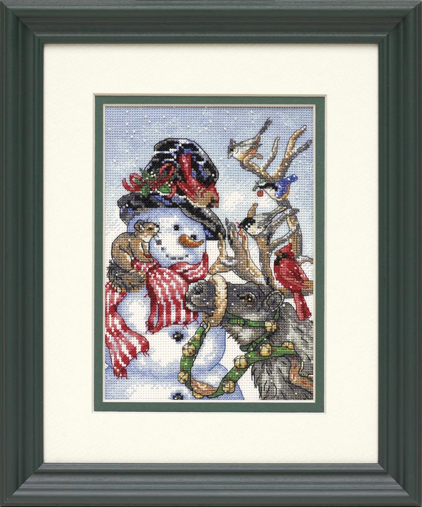 Klein winterwerkje van dimensions: building a snowman , 17,7 cm bij 12,7 cm, 14 count Aida,